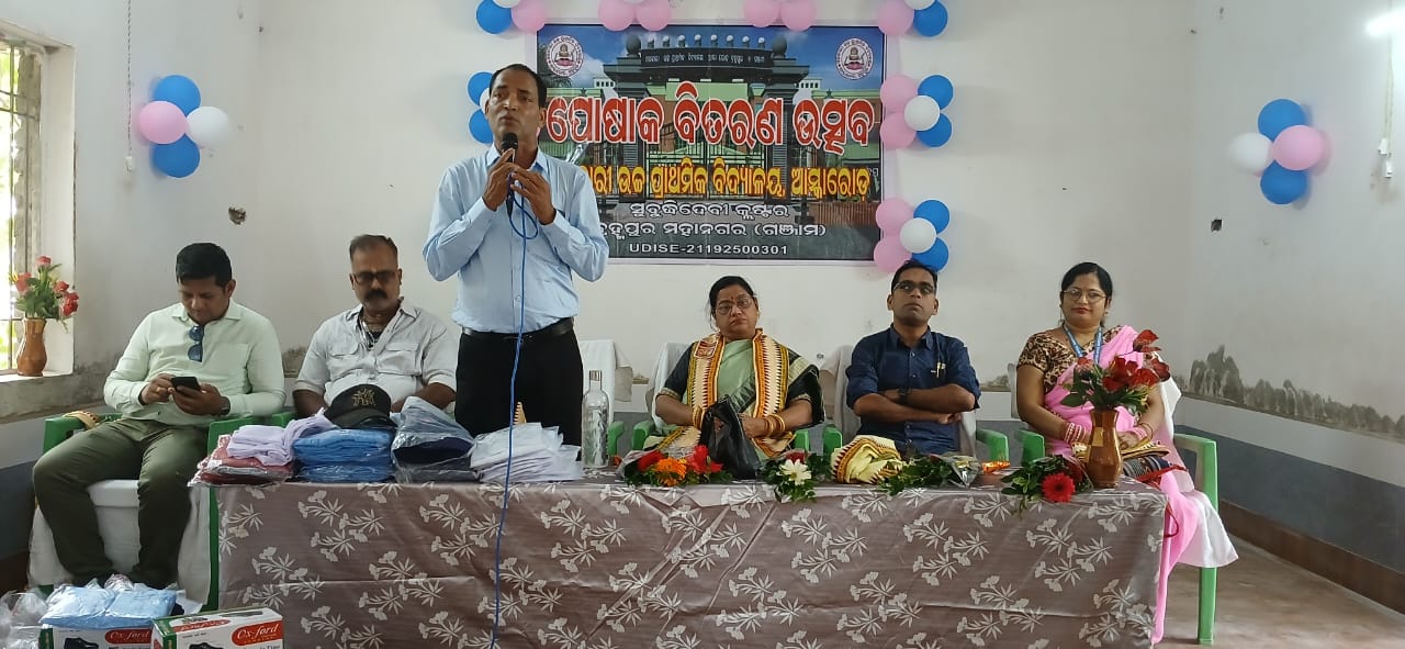 ଆଜି ଅତିଥିଙ୍କ ଦ୍ୱାରା ୫୨୫ ଶିକ୍ଷାର୍ଥୀଙ୍କୁ ଦୁଇହଳ ଲେଖାଏଁ ପୋଷାକ, ଗୋଟିଏ ହଳ ଜୋତା, ମୋଜା-୨ ଓ ଗୋଟିଏ ଟୋପି ବଣ୍ଟନ ପ୍ରକ୍ରିୟାର ଶୁଭାରମ୍ଭ କରାଯାଇଥିଲା । ଏହାଛଡ଼ା ଉକ୍ତ ବିଦ୍ୟାଳୟରେ ଏମ ଡି ଏମ ମେଟେରିୟାଲ ଖର୍ଚ୍ଚ ଯାହା କି ଆଗୁଆ ଖରାଛୁଟି ଘୋଷଣା ଯୋଗୁଁ ଏନ ଏଫ ଏସ ଏ ଯୋଗୁ ମିଳିଥିବା ଅର୍ଥ ରାଶି ମଧ୍ୟ ପରିଚାଳନା କମିଟିର ଉପସ୍ଥିତିରେ ବଣ୍ଟନ କରାଯାଇଥିଲା ।