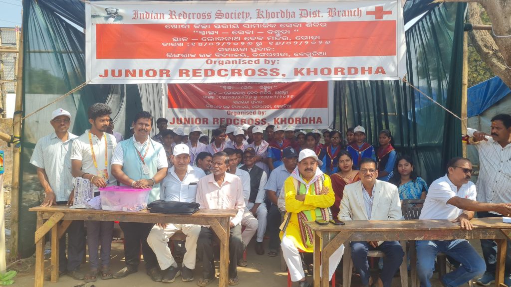ଖୋର୍ଦ୍ଧା ଜିଲ୍ଲା ଶିକ୍ଷା କାର୍ଯ୍ୟାଳୟ ଅନ୍ତର୍ଗତ ଜୁନିଅର ରେଡ଼କ୍ରସ ଖୋର୍ଦ୍ଧା ପକ୍ଷରୁ ମହାଶିବରାତ୍ରି ଅବସରରେ ବେଗୁନିଆ ବ୍ଲକ ଅନ୍ତର୍ଗତ ଗୋଡ଼ାସ୍ଥିତ ଲୋକନାଥ ଦେବ ମନ୍ଦିର ପ୍ରାଙ୍ଗଣରେ ଏକ ସାମାଜିକ ସେବା ଓ ପ୍ରାଥମିକ ଚିକିତ୍ସା ସେବା ଶିବିର ଆୟୋଜିତ ହୋଇଯାଇଛି।